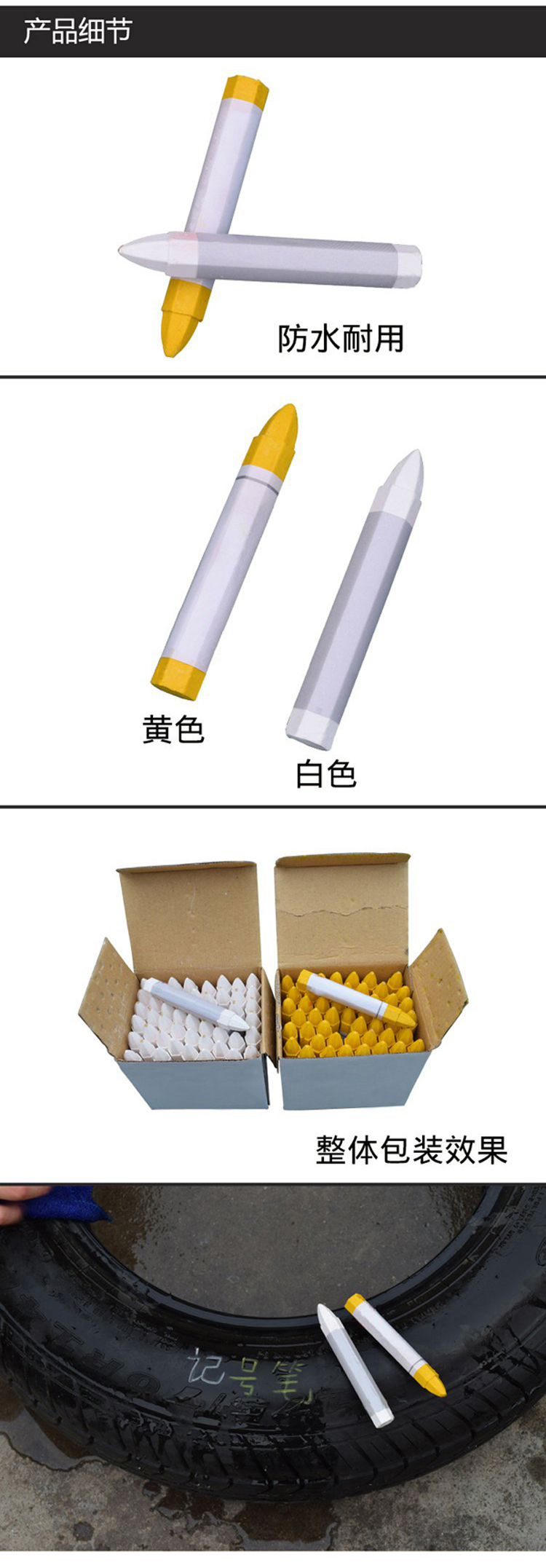 防水輪胎記號(hào)筆 50支防水輪胎記號(hào)筆 優(yōu)秀的設(shè)計(jì),用于修復(fù)汽車劃痕,具有無(wú)毒,永久和防水的特點(diǎn),這款油漆記號(hào)筆是汽車愛(ài)好者和司機(jī)的必備品! 顏色:白色黃色 保質(zhì)期:2年 特點(diǎn):無(wú)毒,永久,防水,不褪色,光滑 保準(zhǔn):50支/盒
